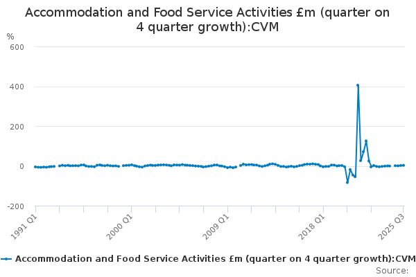 Download this time seriesAccommodation and Food Service Activities £m (quarter on 4 quarter growth):CVM