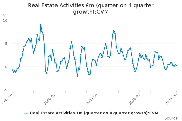 Download this time seriesReal Estate Activities £m (quarter on 4 quarter growth):CVM