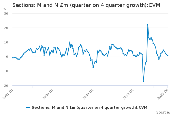 Download this time seriesSections: M and N £m (quarter on 4 quarter growth):CVM