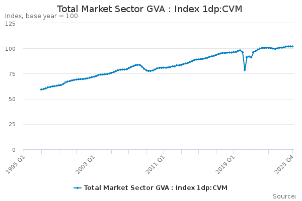 Whilst quality assuring the market sector gross value added series, an error was identified and as a result we are unable to publish this series for 2022 Q1. All data prior to 2022 Q1 is unaffected and we will update this as soon as possible.