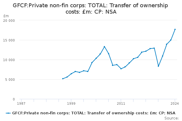 Download this time seriesGFCF:Private non-fin corps: TOTAL: Transfer of ownership costs: £m: CP: NSA