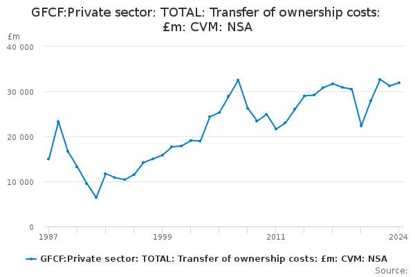 Download this time seriesGFCF:Private sector: TOTAL: Transfer of ownership costs: £m: CVM: NSA