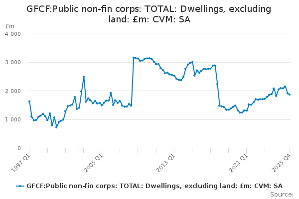 Download this time seriesGFCF:Public non-fin corps: TOTAL: Dwellings, excluding land: £m: CVM: SA