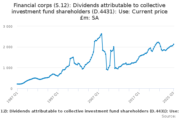 Download this time seriesFinancial corps (S.12): Dividends attributable to collective investment fund shareholders (D.4431): Use: Current price £m: SA