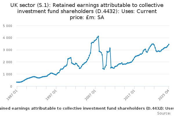 Download this time seriesUK sector (S.1): Retained earnings attributable to collective investment fund shareholders (D.4432): Uses: Current price: £m: SA