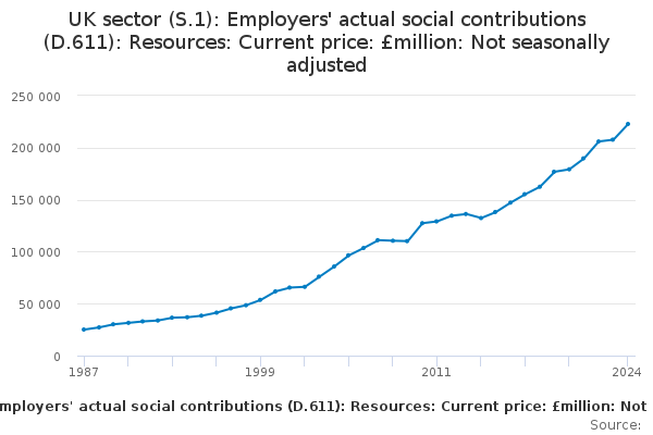 Download this time seriesUK sector (S.1): Employers' actual social contributions (D.611): Resources: Current price: £million: Not seasonally adjusted