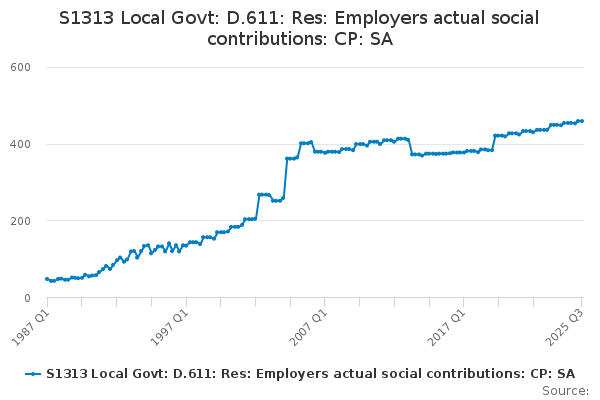 Download this time seriesS1313 Local Govt: D.611: Res: Employers actual social contributions: CP: SA