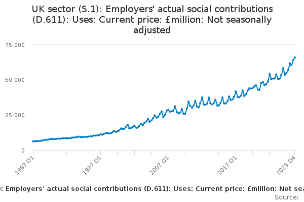 Download this time seriesUK sector (S.1): Employers' actual social contributions (D.611): Uses: Current price: £million: Not seasonally adjusted