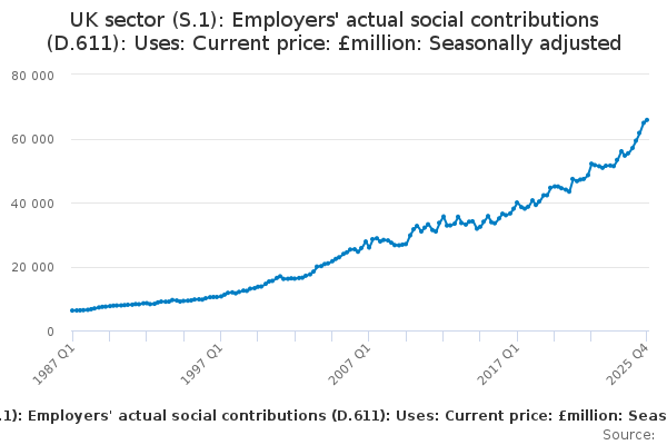 Download this time seriesUK sector (S.1): Employers' actual social contributions (D.611): Uses: Current price: £million: Seasonally adjusted