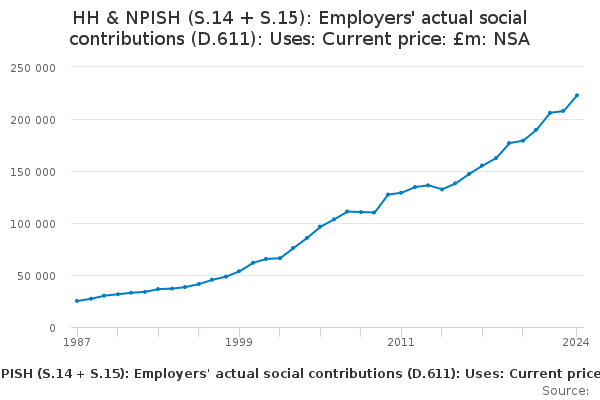 Download this time seriesHH & NPISH (S.14 + S.15): Employers' actual social contributions (D.611): Uses: Current price: £m: NSA