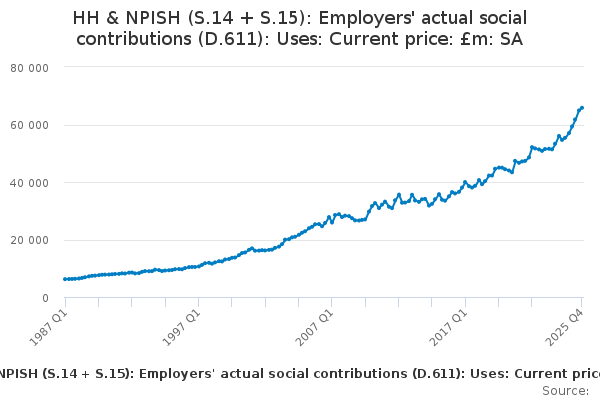 Download this time seriesHH & NPISH (S.14 + S.15): Employers' actual social contributions (D.611): Uses: Current price: £m: SA