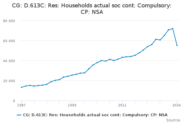 Download this time seriesCG: D.613C: Res: Households actual soc cont: Compulsory: CP: NSA