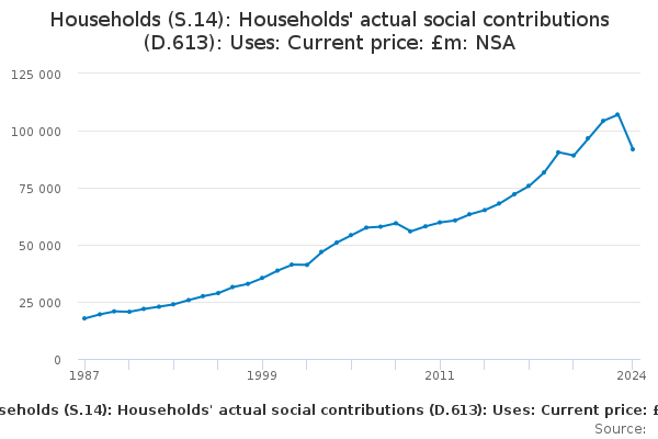 Download this time seriesHouseholds (S.14): Households' actual social contributions (D.613): Uses: Current price: £m: NSA