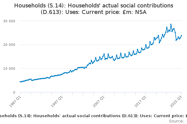 Download this time seriesHouseholds (S.14): Households' actual social contributions (D.613): Uses: Current price: £m: NSA