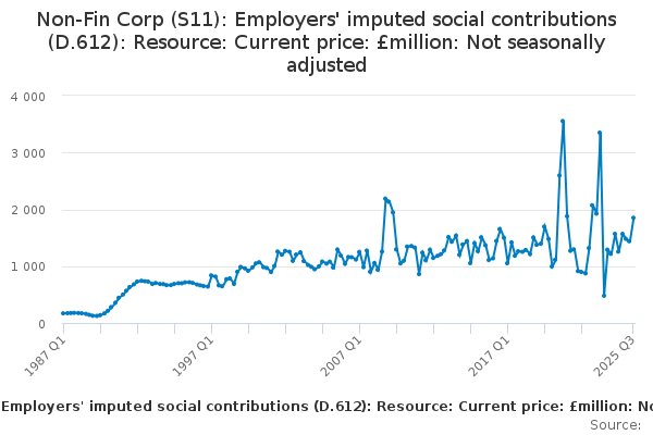 Download this time seriesNon-Fin Corp (S11): Employers' imputed social contributions (D.612): Resource: Current price: £million: Not seasonally adjusted