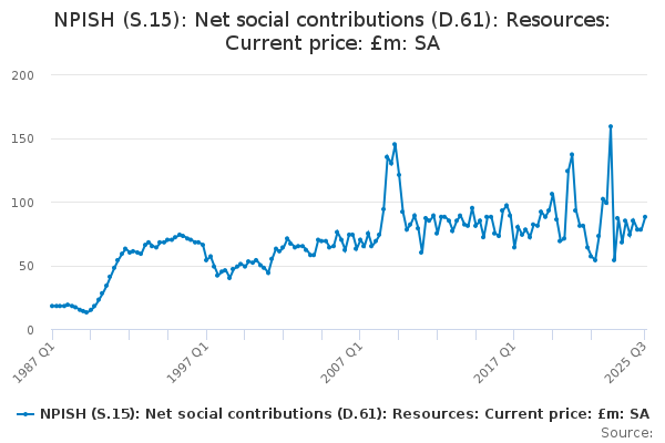 Download this time seriesNPISH (S.15): Net social contributions (D.61): Resources: Current price: £m: SA