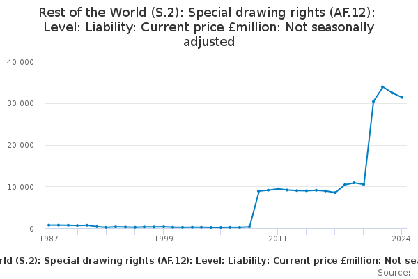 Download this time seriesRest of the World (S.2): Special drawing rights (AF.12): Level: Liability: Current price £million: Not seasonally adjusted