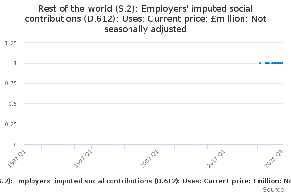 Download this time seriesRest of the world (S.2): Employers' imputed social contributions (D.612): Uses: Current price: £million: Not seasonally adjusted