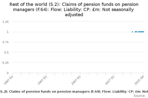 Download this time seriesRest of the world (S.2): Claims of pension funds on pension managers (F.64): Flow: Liability: CP: £m: Not seasonally adjusted