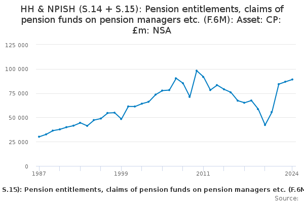 Download this time seriesHH & NPISH (S.14 + S.15): Pension entitlements, claims of pension funds on pension managers etc. (F.6M): Asset: CP: £m: NSA