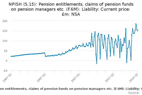Download this time seriesNPISH (S.15): Pension entitlements, claims of pension funds on pension managers etc. (F.6M): Liability: Current price: £m: NSA