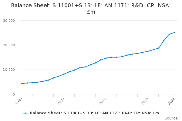 Download this time seriesBalance Sheet: S.11001+S.13: LE: AN.1171: R&D: CP: NSA: £m