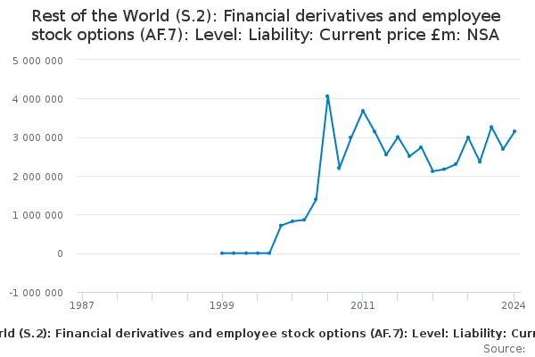 Download this time seriesRest of the World (S.2): Financial derivatives and employee stock options (AF.7): Level: Liability: Current price £m: NSA