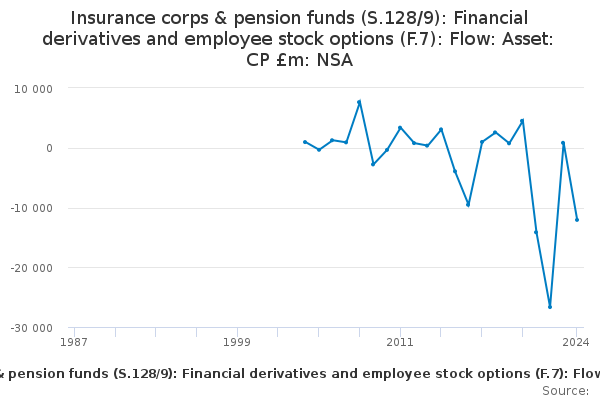 Download this time seriesInsurance corps & pension funds (S.128/9): Financial derivatives and employee stock options (F.7): Flow: Asset: CP £m: NSA