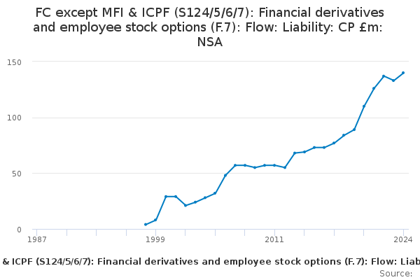 Download this time seriesFC except MFI & ICPF (S124/5/6/7): Financial derivatives and employee stock options (F.7): Flow: Liability: CP £m: NSA