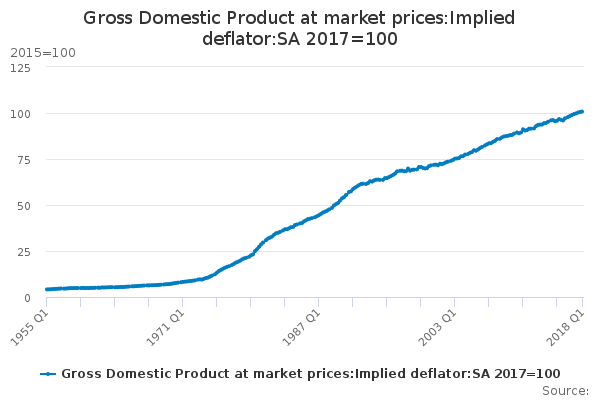 Download this time seriesGross Domestic Product at market prices:Implied deflator:SA 2017=100