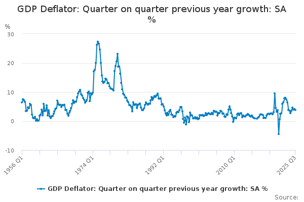 Download this time seriesGDP Deflator: Quarter on quarter previous year growth: SA %