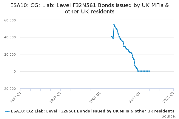 Download this time seriesESA10: CG: Liab: Level F32N561 Bonds issued by UK MFIs & other UK residents