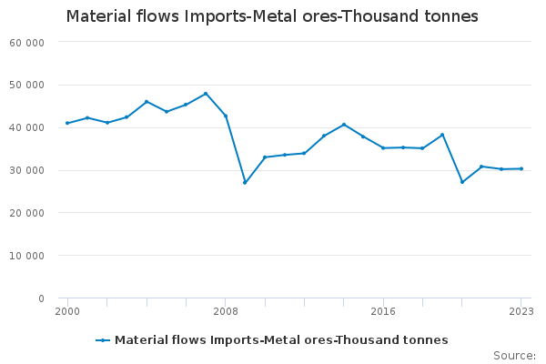 Download this time seriesMaterial flows Imports-Metal ores-Thousand tonnes
