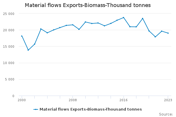 Download this time seriesMaterial flows Exports-Biomass-Thousand tonnes