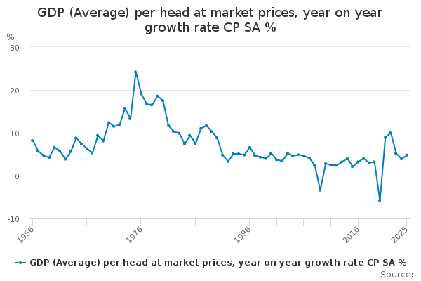 Download this time seriesGDP (Average) per head at market prices, year on year growth rate CP SA %