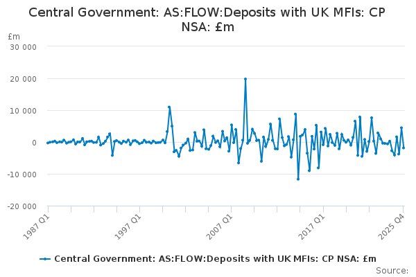 Download this time seriesCentral Government: AS:FLOW:Deposits with UK MFIs: CP NSA: £m