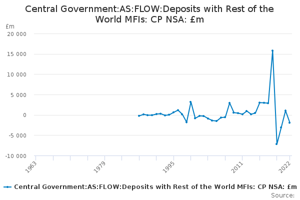 Download this time seriesCentral Government:AS:FLOW:Deposits with Rest of the World MFIs: CP NSA: £m