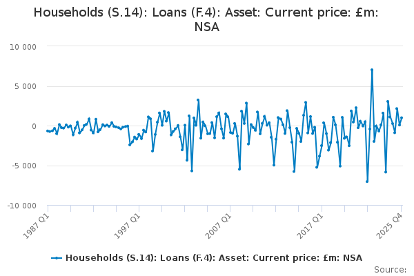 Download this time seriesHouseholds (S.14): Loans (F.4): Asset: Current price: £m: NSA