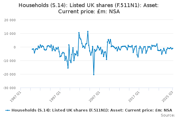 Download this time seriesHouseholds (S.14): Listed UK shares (F.511N1): Asset: Current price: £m: NSA