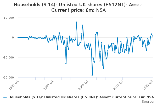 Download this time seriesHouseholds (S.14): Unlisted UK shares (F.512N1): Asset: Current price: £m: NSA