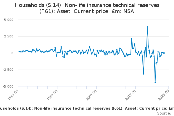 Download this time seriesHouseholds (S.14): Non-life insurance technical reserves (F.61): Asset: Current price: £m: NSA