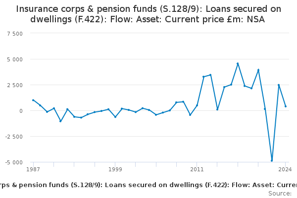 Download this time seriesInsurance corps & pension funds (S.128/9): Loans secured on dwellings (F.422): Flow: Asset: Current price £m: NSA