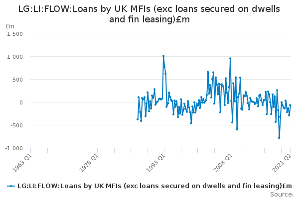 Download this time seriesLG:LI:FLOW:Loans by UK MFIs (exc loans secured on dwells and fin leasing)£m