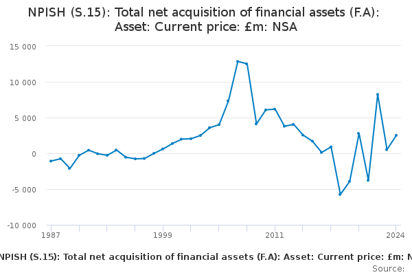 Download this time seriesNPISH (S.15): Total net acquisition of financial assets (F.A): Asset: Current price: £m: NSA