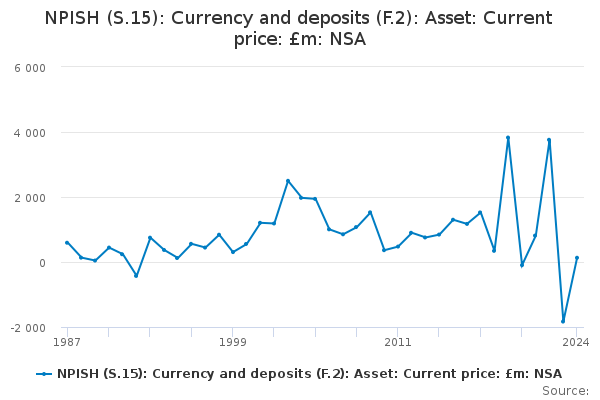 Download this time seriesNPISH (S.15): Currency and deposits (F.2): Asset: Current price: £m: NSA