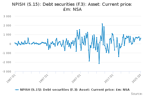 Download this time seriesNPISH (S.15): Debt securities (F.3): Asset: Current price: £m: NSA