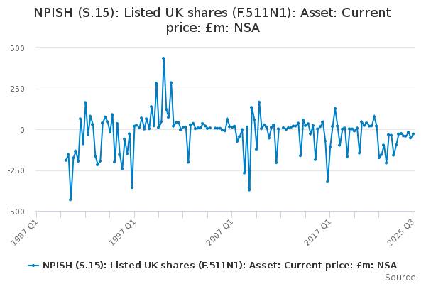 Download this time seriesNPISH (S.15): Listed UK shares (F.511N1): Asset: Current price: £m: NSA