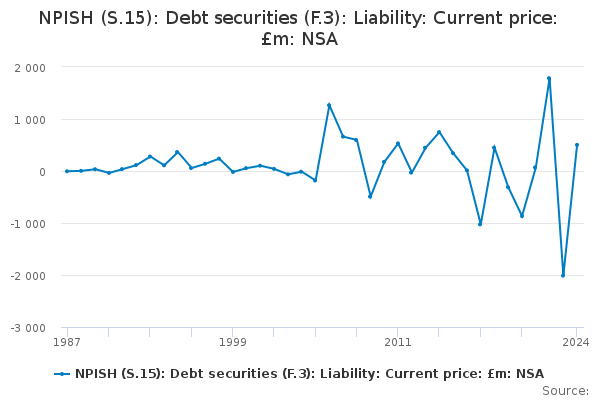 Download this time seriesNPISH (S.15): Debt securities (F.3): Liability: Current price: £m: NSA