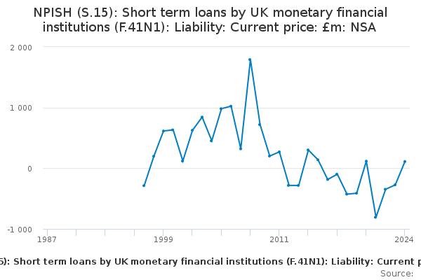 Download this time seriesNPISH (S.15): Short term loans by UK monetary financial institutions (F.41N1): Liability: Current price: £m: NSA