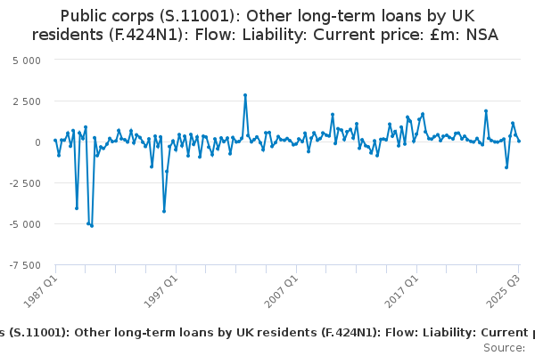 Download this time seriesPublic corps (S.11001): Other long-term loans by UK residents (F.424N1): Flow: Liability: Current price: £m: NSA